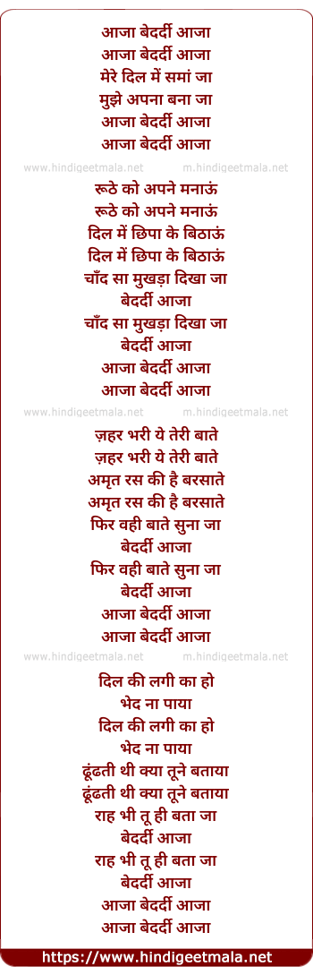 Lyrics of Aaja Bedardi Aaja - आजा बेदर्दी आजा