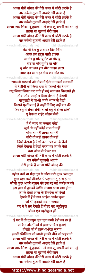 Lyrics of Aaja Gori Bangad Ki Teri Kamar Pe - आजा गोरी बांगड़ की तेरी कमर
