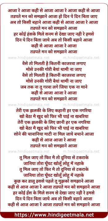 Lyrics of Aaja Re Aaja Kahi Se Aaja - आजा रे आजा कही से आजा