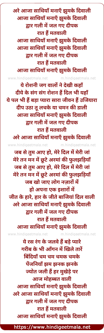 are aaja saathiya manaye jhumke diwali