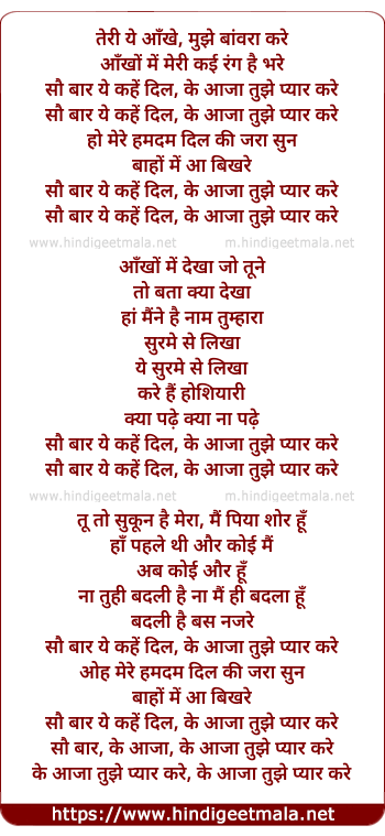sau baar, ke aaja, ke aaja tujhe pyar kare