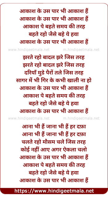 Lyrics of Aakaash Ke Us Paar Bhi Aakaash Hain - आकाश के उस पार भी आकाश हैं