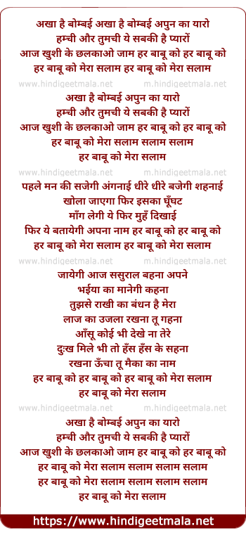 Lyrics of Aakha Hai Bombai - अखा है बोम्बई