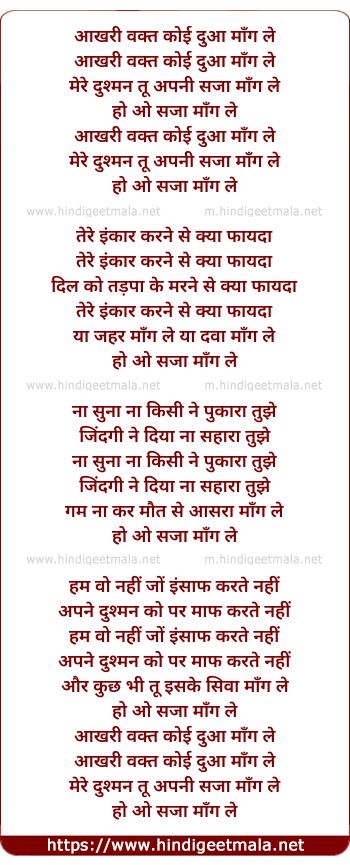Lyrics of Aakhri Waqt Koi Dua Mang Le - आखरी वक्त कोई दुआ माँग ले