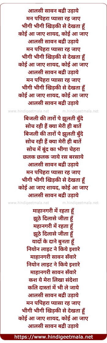 Lyrics of Aalsi Sawan Badri Udaae - आलसी सावन बद्री उड़ाये