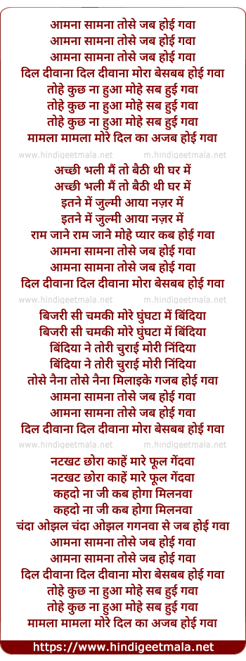 Lyrics of Aamna Samna Tose Jab - आमना सामना तोसे जब