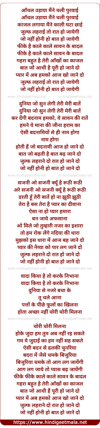 Lyrics of Aanchal Udaya Maine Chali Purvaiye - आँचल उड़ाया मैंने चली पुरवाई