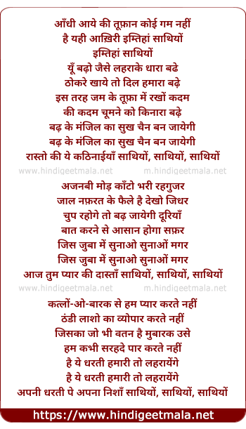 Lyrics of Aandhi Aaye Ki Tufan - आँधी आये की तूफ़ान