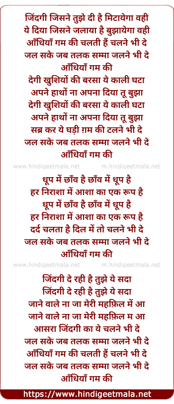 Lyrics of Aandhiyan Gham Ki Chalti Hain - आँधियाँ गम की चलती हैं