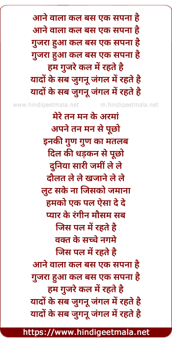 Lyrics of Aane Vala Kal Bas Ek Sapana Hai - आने वाला कल बस एक सपना है