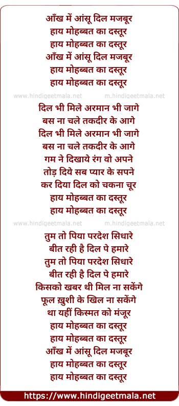 Lyrics of Aankh Me Aansu Dil Majbur - आँख में आंसू दिल मजबूर