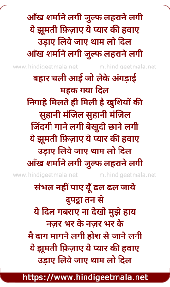 Lyrics of Aankh Sharmane Lagi Julf Lahrane Lagi - आँख शर्माने लगी जुल्फ लहराने लगी