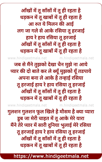Lyrics of Aankho Me Tu Me Me Tu - आँखों में तू साँसों में तू ही रहता है