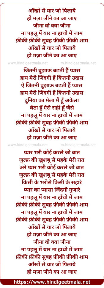 Lyrics of Aankho Se Yaar Jo Pilaye - आँखों से यार जो पिलाये