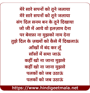 mere saare sapno ko tune jalaya
