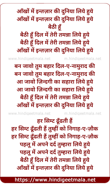 Poetic Translation - Lyrics of Aankhon Mein Intezaar - आँखों में इन्तज़ार