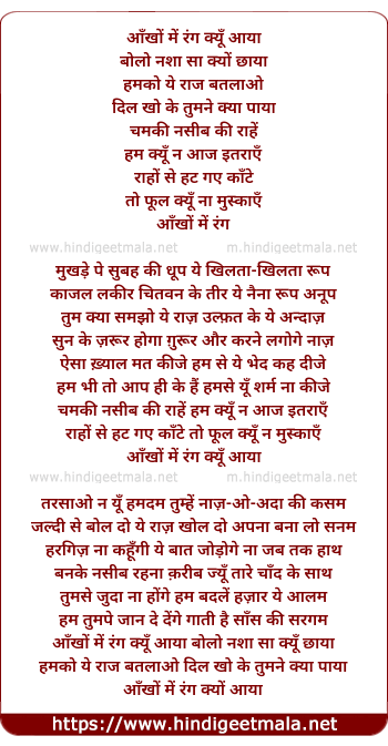 Lyrics of Aankhon Mein Rang Kyon Aaya - आँखों में रंग क्यूँ आया