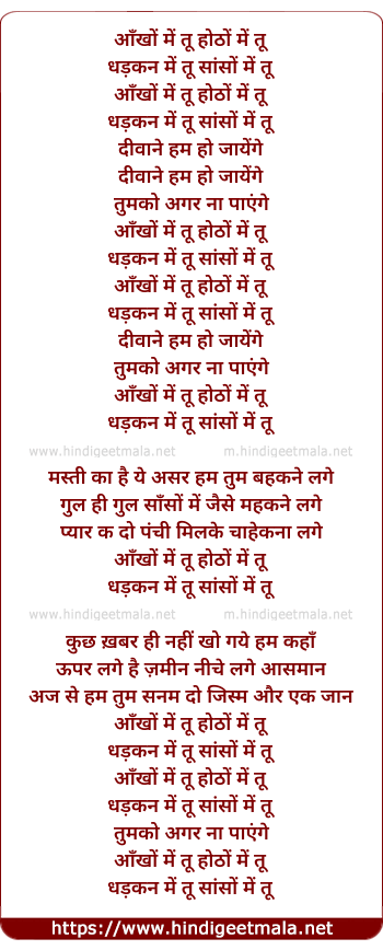 Lyrics of Aankhon Mein Tu Hothon Mein Tu - आँखों में तू होठों में तू