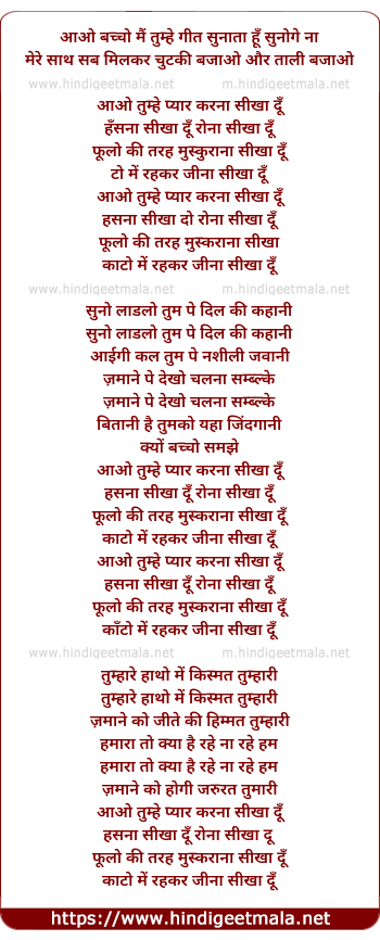 Lyrics of Aao Bachho Main Tumhe Geet Sunata Hu - आओ बच्चो मैं तुम्हे गीत सुनाता हूँ