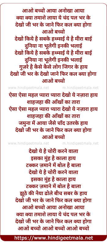 Lyrics of Aao Bacho Aaya Anokha Aaya - आओ बच्चो आया अनोखा आया