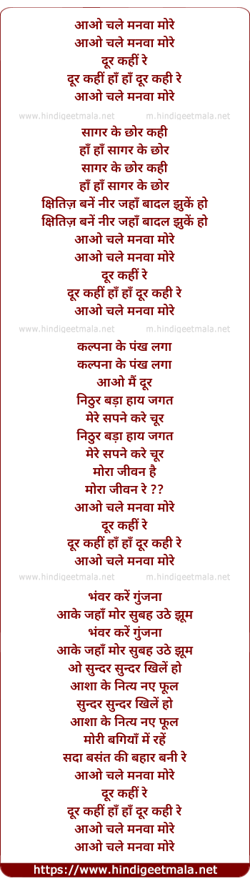 Lyrics of Aao Chale Manwa - आओ चले मनवा मोरे
