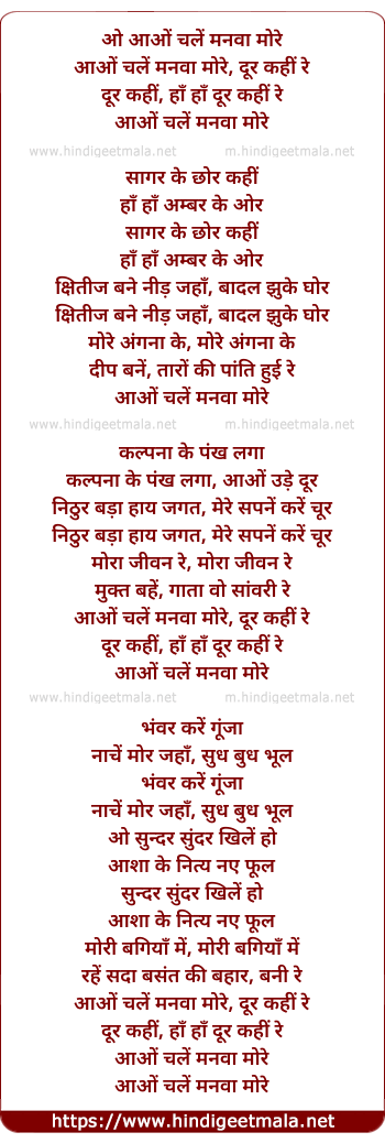 Lyrics of Aao Chalen Manwa More - आओं चलें मनवा मोरे