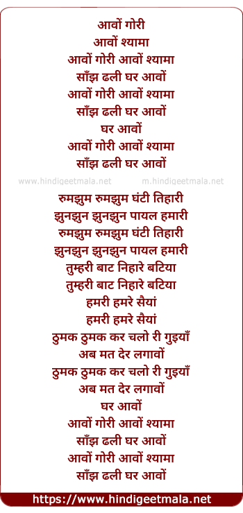 Lyrics of Aao Gori Aao Shyama - आवों गोरी