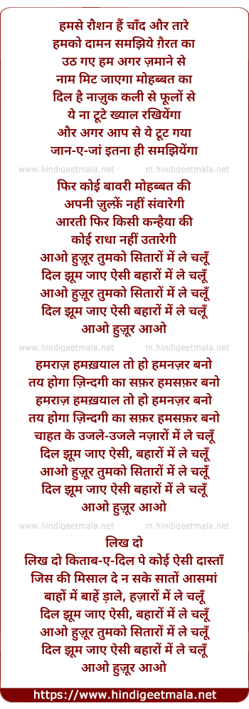 Lyrics of Aao Hujur Tumko Sitaaro Me Le Chalu - आओ हुजुर तुमको सितारों में ले चालू