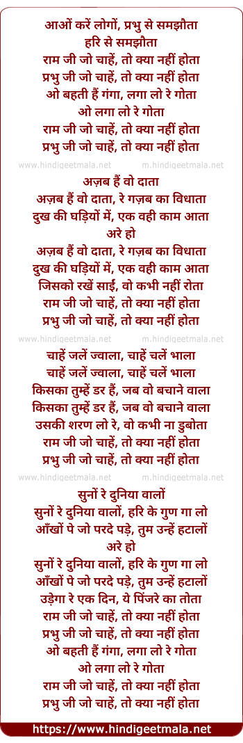 Lyrics of Aao Kare Logo Prabhu Se Samjhota - आओं करें लोगों प्रभु से समझौता
