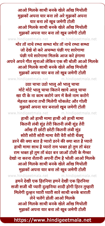Lyrics of Aao Milke Sathi Banke Khele - आओ मिलके साथी बनके खेले