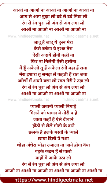 Lyrics of Aao Na Aag Se Bujha Lo - आओ ना आग से बुझा लो