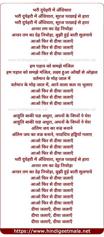 Lyrics of Aao Phir Se Diya Jalaya - भरी दुपेहरी में अँधियारा