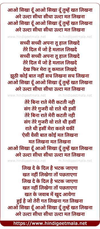 Lyrics of Aao Sikha Du Tumhe Khat Likhna - आओ सिखा दूँ तुम्हें खत लिखना