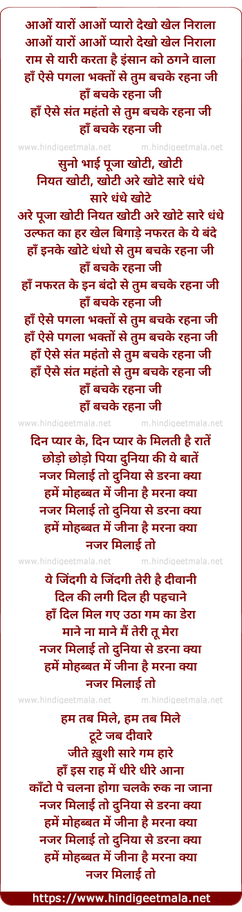 Lyrics of Aao Yaaro Aao Pyaro Dekho Khel Nirala - आओं यारों आओं प्यारो देखो खेल निराला