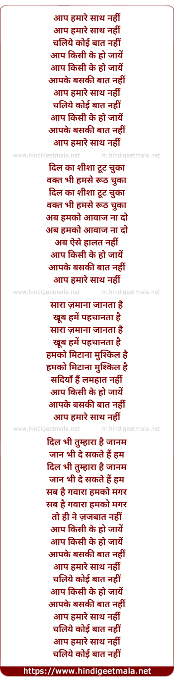 Lyrics of Aap Hamare Saath Nahin - आप हमारे साथ नहीं