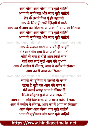 Lyrics of Aap Jaisa Aap Jaisa Yaar Mujhe Chahiye - आप जैसा आप जैसा यार मुझे चाहिये