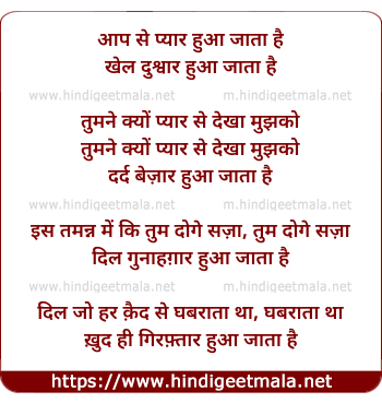 Lyrics of Aap Se Pyar Hua Jata Hai - आप से प्यार हुआ जाता है