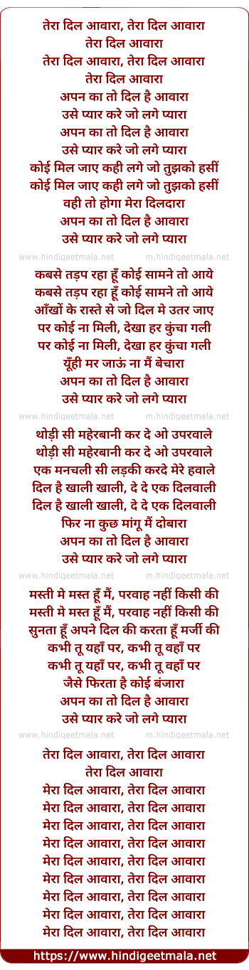 Lyrics of Aapan Ka To Dil Hai Awara - अपन का तो दिल है आवारा