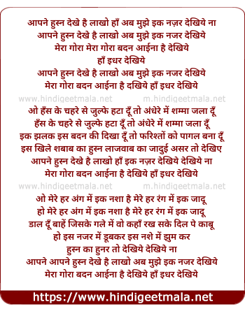 Lyrics of Aapne Husn Dekhe Hai Lakho - आपने हुस्न देखे है लाखो