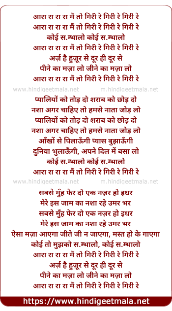 Lyrics of Aaraa Main To Giri Re Koi Sambhaalo - आरारा मैं तो गिरी रे कोई सम्भालो