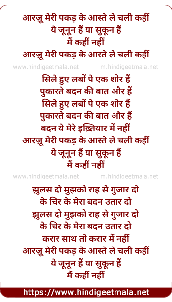 Lyrics of Aarzoo Meri - आरज़ू मेरी पकड़ के आस्ते ले चली कहीं