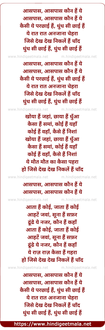 Lyrics of Aas Paas (Male) - आसपास, आसपास कौन हैं ये