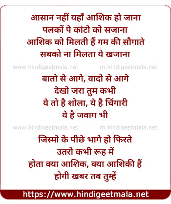 Lyrics of Aasan Nahi Yaha Aashiq Ho Jana - आसां नहीं यहाँ आशिक हो जाना