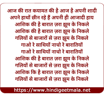 Lyrics of Aashiq Ki Hai Barat - आशिक कि है बारात