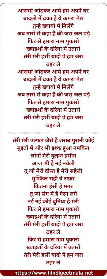 Lyrics of Aasma Odhkar Aaye Hum Apane Ghar - आसमां ओढ़कर आये हम अपने घर
