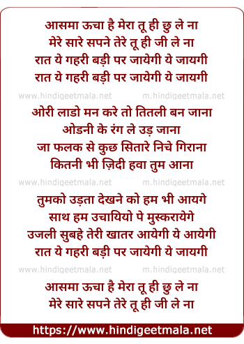 Lyrics of Aasman Ooncha Hai Mera (Studio Version) - आसमान ऊँचा है मेरा