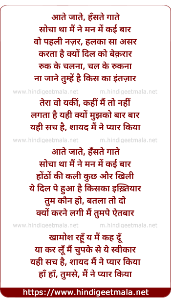 Lyrics of Aate Jate, Hanste Gate - आते जाते, हँसते गाते