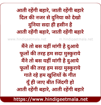 Lyrics of Aati Rahengi Bahare (Sad) - आती रहेंगी बहारे, जाती रहेंगी बहारे