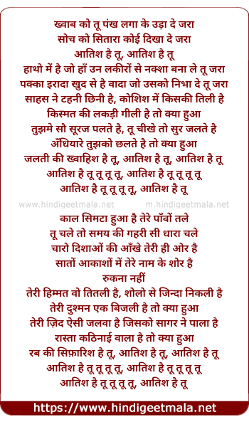 Lyrics of Aatish Hai Tu - ख्वाब को तू पंख लगा के उड़ा दे जरा