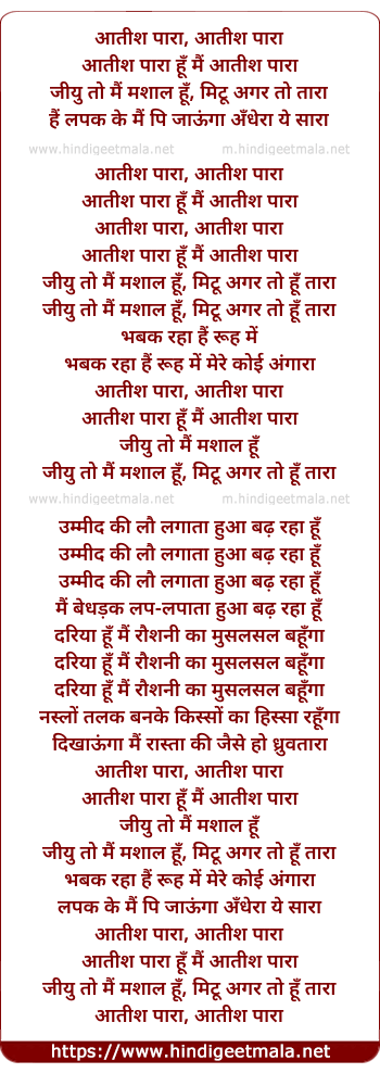 Lyrics of Aatish Paraa - आतीश पारा, आतीश पारा